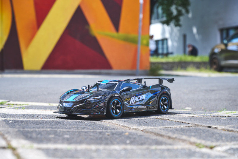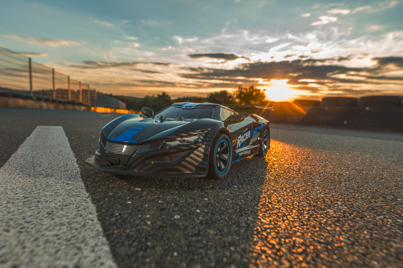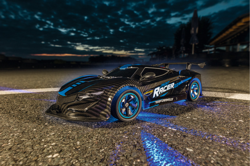 Mit dem CARSON Night Racer 2.0 bist du der König der Straße! Der Racer ist voll gefedert und mit einem Differentialgetriebe ausgestattet. Schnelligkeit und Wendigkeit sind die wichtigsten Eigenschaften des ferngesteuerten Night Racers, welche ihn sowohl auf geraden als auch auf kurvenreichen Strecken unschlagbar machen. Zudem verleihen die detaillierte Lackierung und die blau beleuchteten Felgen dem RC-Racer auch im Dunkeln einen ganz besonderen Look. Der Night Racer wird inklusive einer 2,4 GHz Fernsteuerung ausgeliefert und ist nach dem ersten Laden sofort startklar. Viel Spaß mit deinem 1:10 Night Racer 2.0! Kaufen - Laden - Fahren!