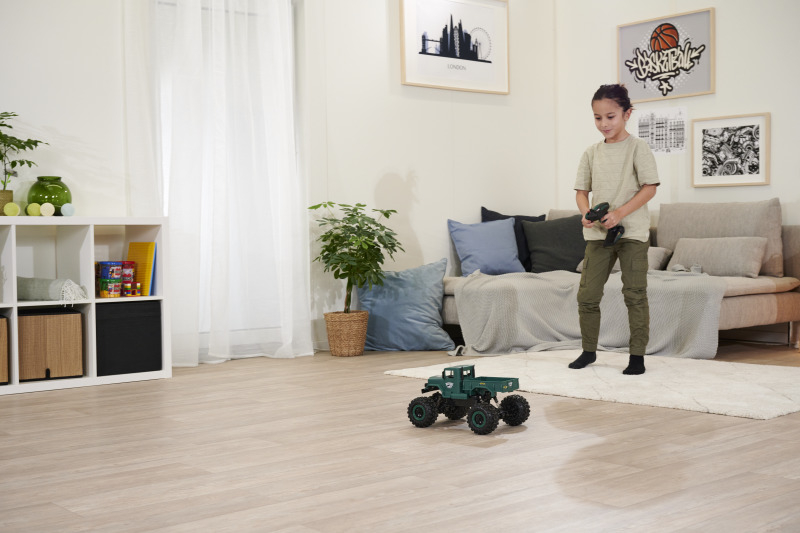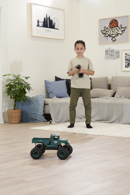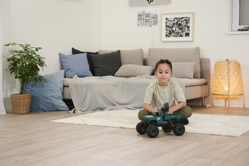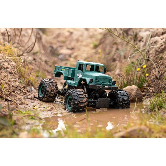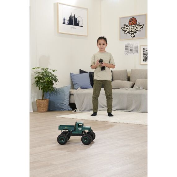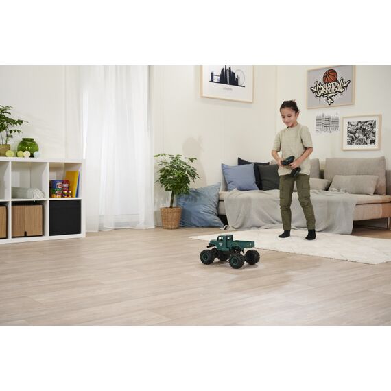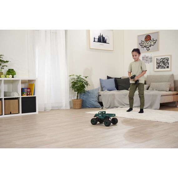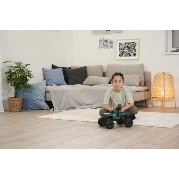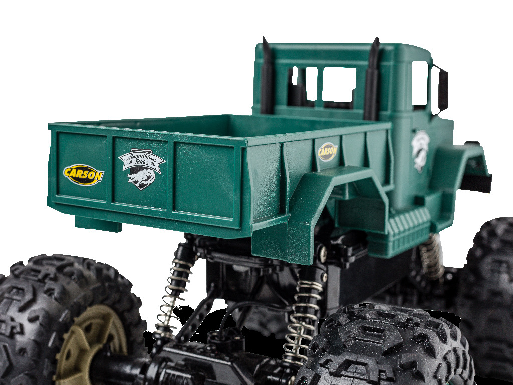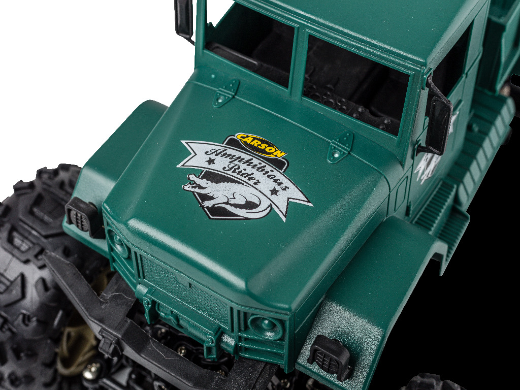 Du willst Offroad-RC-Action und auch mal durchs Wasser fahren? Dann ist der Amphibious Rider genau das richtige Fahrzeug für dich! Der Crawler-Truck im Maßstab 1:12 verfügt über einen kräftigen Allrad-Antrieb und ist voll gefedert: Ausgiebigen Geländetouren steht also nichts im Weg! Dank wasserdicht verbauter RC-Parts musst du dir auch keine Sorgen machen, wenn der kleine Crawler mal nass wird. Die einfache Bedienbarkeit und das störungsfreie 2.4 GHz Fernsteuerungssystem sorgen dafür, dass auch RC-Einsteiger sofort mit dem coolen Truck zurechtkommen. Damit du direkt nach dem ersten Ladevorgang ins Gelände starten kannst, ist im Lieferumfang alles nötige Zubehör enthalten: Fernsteuerung mit Senderbatterien, Akkupack und USB-Ladegerät. Kaufen - Laden - Fahren!