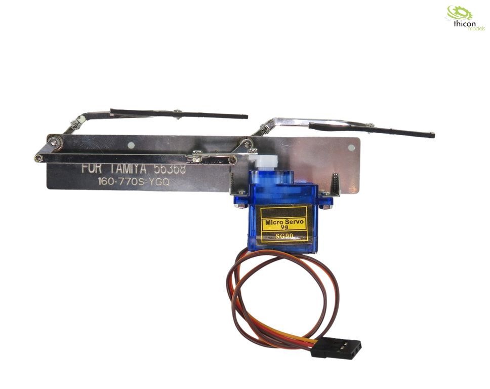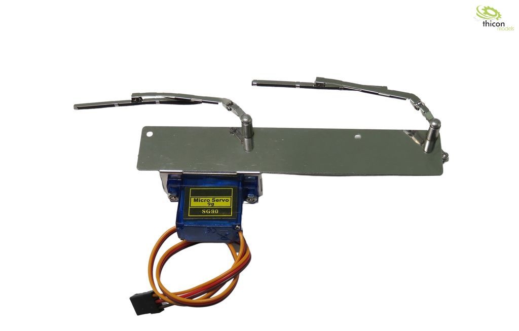 Funktionsfähige Scheibenwischer passend zum TAMIYA Scania 770s. Das Servo läuft wie ein Motor durch und treibt so die Scheibenwischer an.