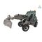 Kleiner kompakter Teleskop-Radlader aus Metall mit Hydraulik, Licht und Sound und Gabelschaufel. Der Mini-Radlader ist sehr wendig und hat einen mechanischen Schnellwechsler für diverse Werkzeuge. Die Hydraulischen Anschlüsse sind praktisch im vorderen Arm seitlisch angebracht.