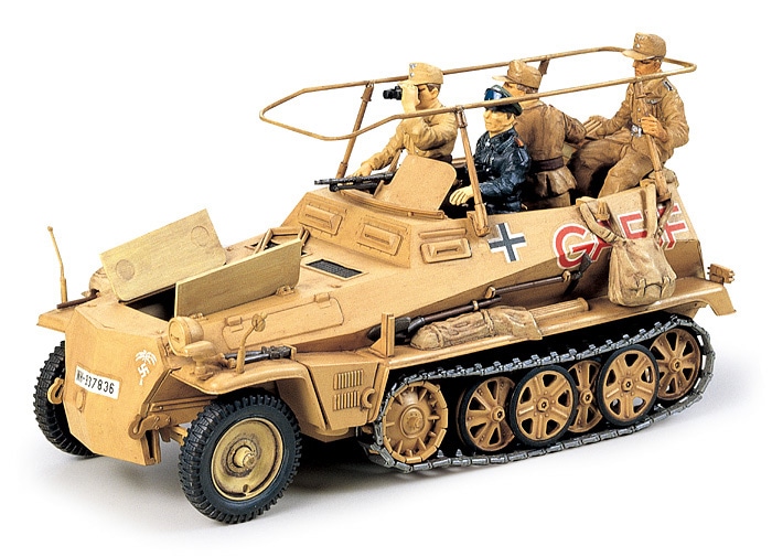 Das Sd.Kfz 250 wurde als leichtes Aufklärungs- und Mehrzweckfahrzeug für die deutschen Panzerdivisionen und Panzergrenadiere entwickelt. Im Laufe der Serienproduktion wurden zwei Versionen der Sd.Kfz 250-Wanne erstellt: Die erste (genannt "alt") hatte hinterschnittene Seitenwannenplatten und eine gebrochene Panzerplatte an der Vorderseite der Wanne. 1943 wurde die "neue" Version eingeführt, die vereinfacht wurde: Die Wannenseiten waren flach, ebenso wie die Panzerplatte an der Vorderseite des Autos. Während des Zweiten Weltkriegs entstanden mehrere Varianten und Versionen des Sd.Kfz 250. Die erste chronologische Version war das Sd.Kfz 250/1, das die Basisversion war und als leichter Infanterietransporter oder Aufklärungsfahrzeug fungieren konnte. Später erschien die Sd.Kfz 250/3-Version, eine Befehlsversion mit einer Langstrecken-Rahmenantenne und einem Langstrecken-Funkgerät. Später wurde eine mit einem 80-mm-Mörser (Sd.Kfz 250/7), einer 28-mm-Panzerabwehrkanone (Sd.Kfz 250/11) oder einem Aufklärungsfahrzeug mit einer 20-mm-Kanone in einem Drehturm (Sd. KFZ 250/9). Autos Sd.Kfz 250 aller Versionen wurden hauptsächlich in Panzerdivisionen und Panzergrenadieren an praktisch allen Fronten des Zweiten Weltkriegs eingesetzt.