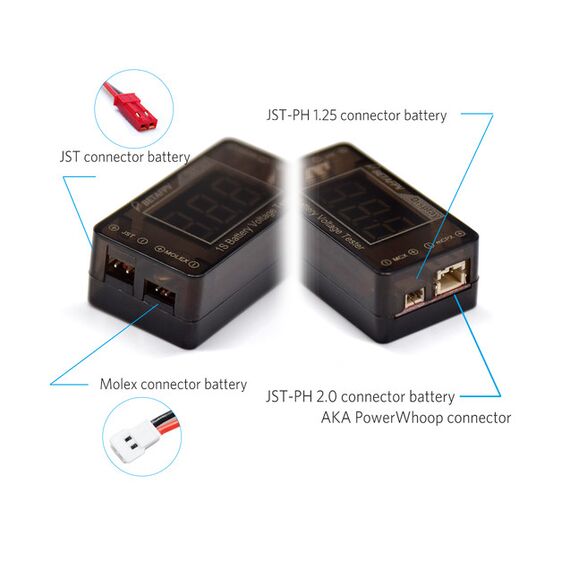 This device also doubles as a cell voltage checker thanks to the on-board LCD display. This LiPo Battery Voltage Checker will quickly tell you the total voltage.
