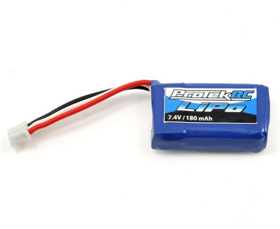 This is a ProTek R/C 2S, 180mAh, 25C "High Power" Li-Poly Micro Heli/Airplane Battery Pack. This super light weight Li-Poly battery is designed to power small lightweight aircraft, like the E-flite UMX Sbach, UMX Beast 3D and ParkZone UMX F-27Q Stryker 180. This lightweight Li-Poly 25C battery pack is designed to fit radio controlled planes and helicopters that require a 2S 180mAh battery pack. These batteries are a true 25C battery pack, and with a full 25C discharge capacity and light weight, these batteries are a power house for compatible helicopters and airplanes!