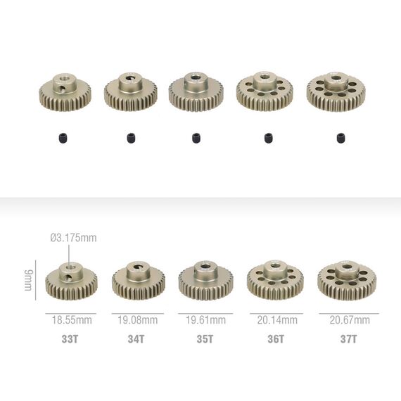 36T 48DP pinion gear 7075 Aluminum 3.175 bore For 1-10 cars
