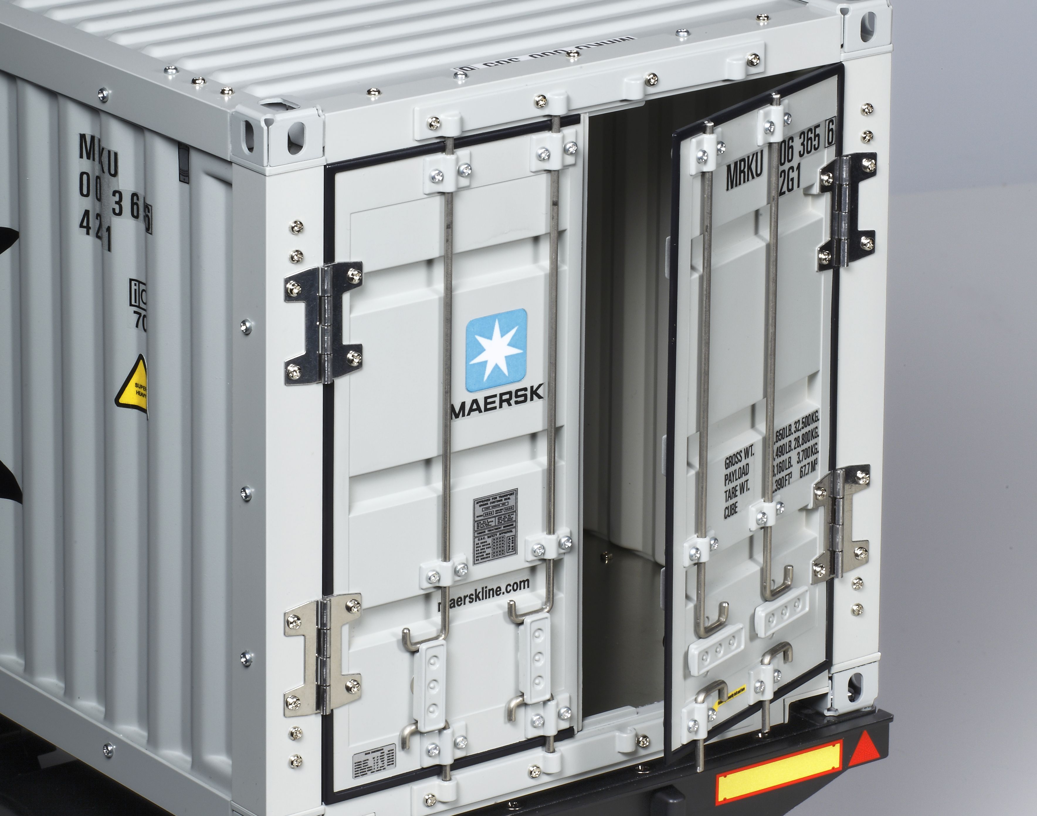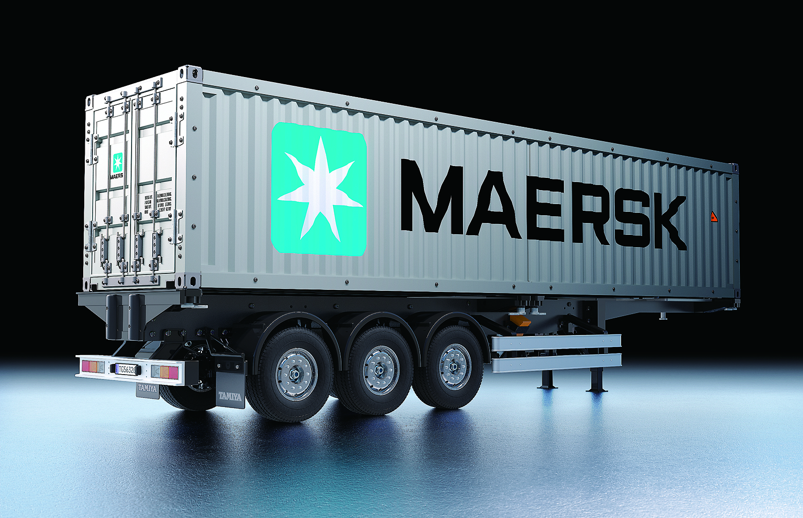 Blattfedern, funktionelle Containertüren und Aufliegerstützen sowie die Möglichkeit, den Container vom Auflieger abzunehmen, zeichnen das TAMIYA-Modell aus. Die Containerbauteile sind im original Grauton der weltweit bekannten MAERSK-Container gehalten. Türverschlusssystem und Containerfixierung sind perfekt nachgebildet und voll funktionsfähig. Es können zwei 20-Fuss oder ein 40-Fuss-Container aufgeladen werden. Der Auflieger lässt sich mit allen TAMIYA-Zugmaschinen koppeln.