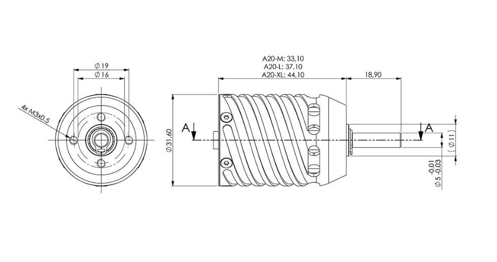 Die Baureihe A20-Competition wurde speziell für schmale Rümpfe entwickelt. Es handelt sich um leichte, leistungsstarke, gekapselte Außenläufermotoren mit hohem Drehmoment und Wirkungsgrad. Sie benötigen kein Getriebe und sind für ein breites Anwendungsspektrum geeignet. Die A20 Competition Motoren sind komplett gekapselt, d.h. es gibt keine rotierenden Motorteile außer der Motorwelle! In Verbindung mit dem rückseitigen Kabelausgang können so auch schmalste Rümpfe sicher motorisiert werden. Der interne Lüfter, die doppelten Kugellager und die austauschbare 5mm Welle machen den Motor effizient und robust.