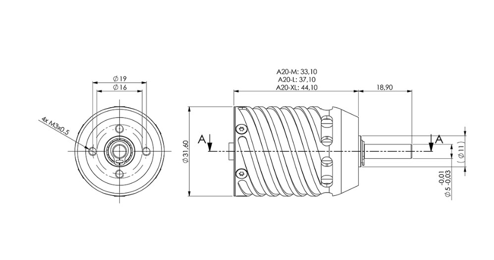 Die Baureihe A20-Competition wurde speziell für schmale Rümpfe entwickelt. Es handelt sich um leichte, leistungsstarke, gekapselte Außenläufermotoren mit hohem Drehmoment und Wirkungsgrad. Sie benötigen kein Getriebe und sind für ein breites Anwendungsspektrum geeignet. Die A20 Competition Motoren sind komplett gekapselt, d.h. es gibt keine rotierenden Motorteile außer der Motorwelle! In Verbindung mit dem rückseitigen Kabelausgang können so auch schmalste Rümpfe sicher motorisiert werden. Der interne Lüfter, die doppelten Kugellager und die austauschbare 5mm Welle machen den Motor effizient und robust.