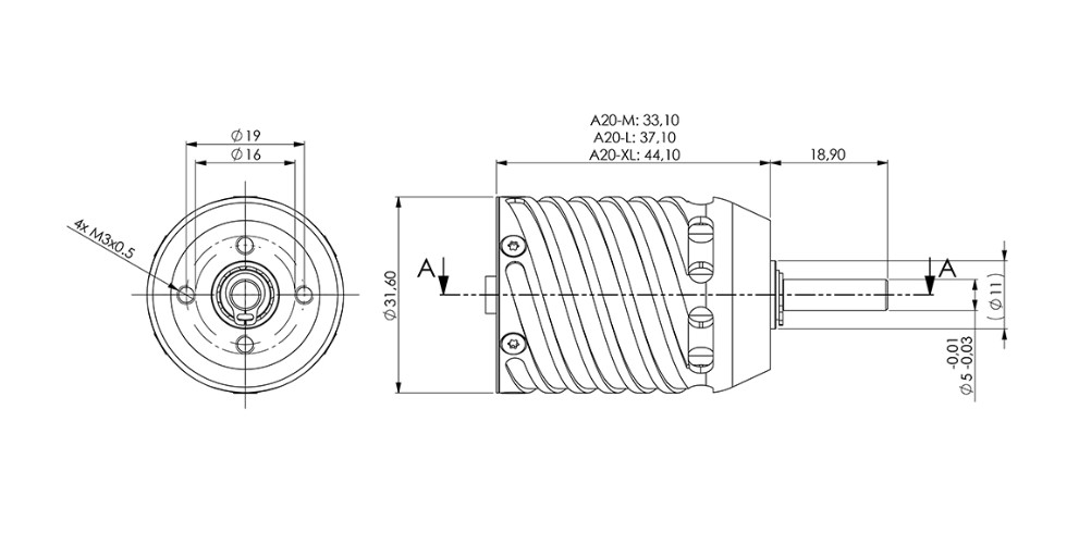 Die Baureihe A20-Competition wurde speziell für schmale Rümpfe entwickelt. Es handelt sich um leichte, leistungsstarke, gekapselte Außenläufermotoren mit hohem Drehmoment und Wirkungsgrad. Sie benötigen kein Getriebe und sind für ein breites Anwendungsspektrum geeignet. Die A20 Competition Motoren sind komplett gekapselt, d.h. es gibt keine rotierenden Motorteile außer der Motorwelle! In Verbindung mit dem rückseitigen Kabelausgang können so auch schmalste Rümpfe sicher motorisiert werden. Der interne Lüfter, die doppelten Kugellager und die austauschbare 5mm Welle machen den Motor effizient und robust.