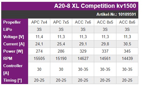 A20-8 XL Competition kv1500 und Anleitung
