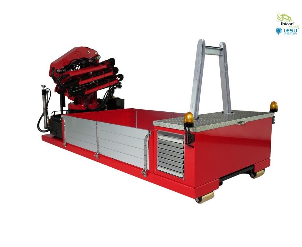 Abrollaufbau mit Ladekran RTR rot fertig aufgebaut 1:14