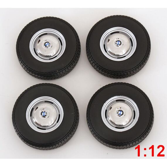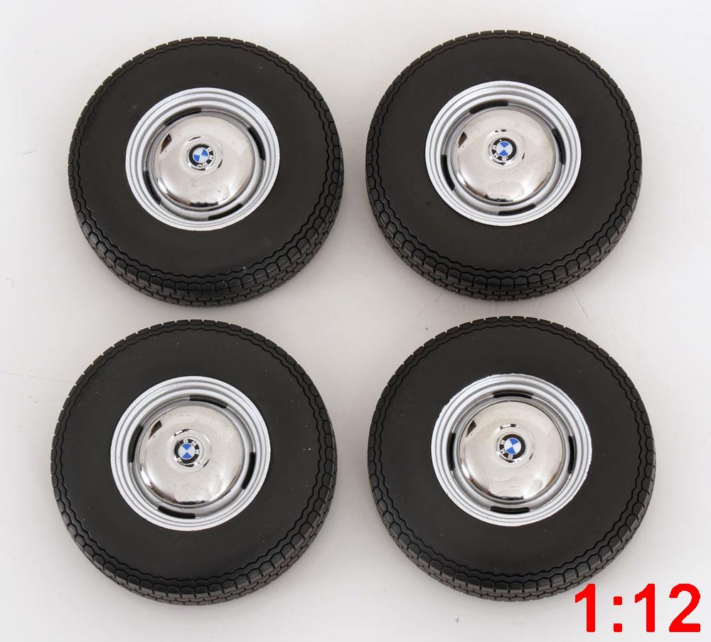 ACCESSORIES SET 4X WHEELS AND RIMS FOR BMW 2002 1967 BLACK CHROME