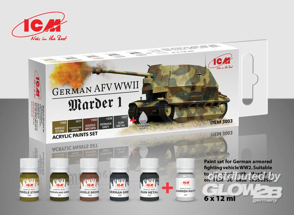 Acrylic paint set for German AFV WW2 (Marder I) 6 12 ml