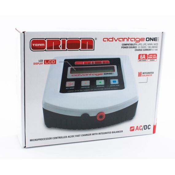 Das Advantage ONE 406 ist im modernen Gehäuse Design der Team Orion Touch Lader aufgebaut und spiegelt damit die hohe Wertigkeit der Team Orion Produkte wieder. Das zweizeilige LC-Display liefert alle erforderlichen Informationen über den Ladevorgang und den Zustand des Akkus. Die Bedienung der Software und die Einstellung der Parameter erfolgt über die vier Taster auf der Oberseite des Gerätes. An der vorderen Seite des Advantage ONE 406 befinden sich die grosszügig dimensionierten Ladeausgänge und an der rechten Seite die Balancer-Anschlüsse. Das Advantage ONE 406 kann wahlweise mit 230V~ Netzspannung oder 12V= aus einer Autobatterie betrieben werden. So ist das Advantage ONE 406 die perfekte Wahl für daheim und unterwegs.