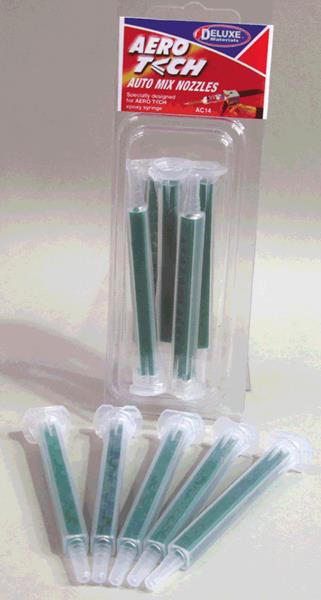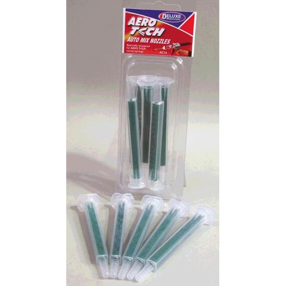 Spezielle Mischdüsen für AERO TECH Kartuschen. Enthält 5 Düsen zur Verwendung mit AERO TECH zwei Komponenten Kartuschen, um eine sorgfältige Vermischung und maximale Klebkraft zu gewährleisten.