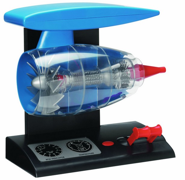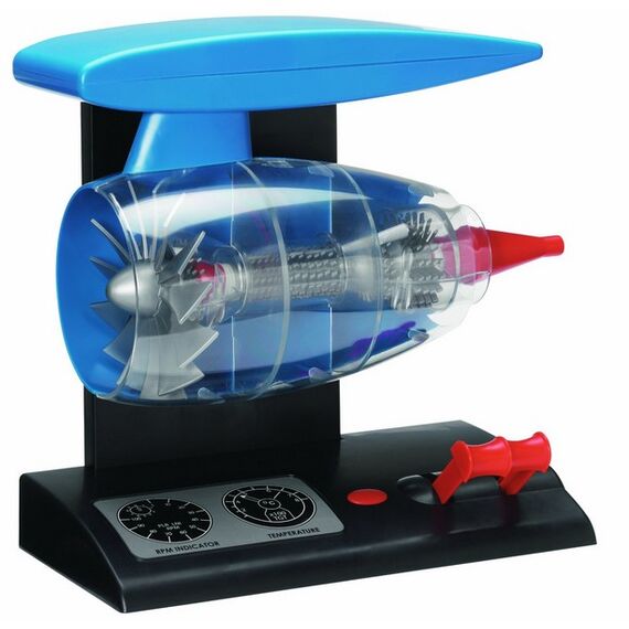 Hochwertiger, detaillierter Bausatz einer Flugzeugturbine. Fuktionstüchtig mit Motor (Batteriebetrieben - Batterien nicht enthalten) - incl. sichtbarer Drehung, Lichteffekten, Regler und Geräusch. Mit verschiedenfarbigen Plastikteilen, Metallschrauben, Drähten, etc.