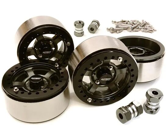 For a classic feel, try our new Billet Machined 'Classic-5' High Mass Wheel Set. These are also a 1.9-class alloy wheel with a true beadlock design. The outer alloy trim ring and center cap attach to our 'high-mass' center barrel that puts weight onto the tires for more traction. These wheels also come with a set of 14mm hubs in case you want to widen the stance of your rig. Sold in a complete set of 4, these wheels are available in blue, gold, green, gunmetal, hard-finish, red, or silver color schemes.