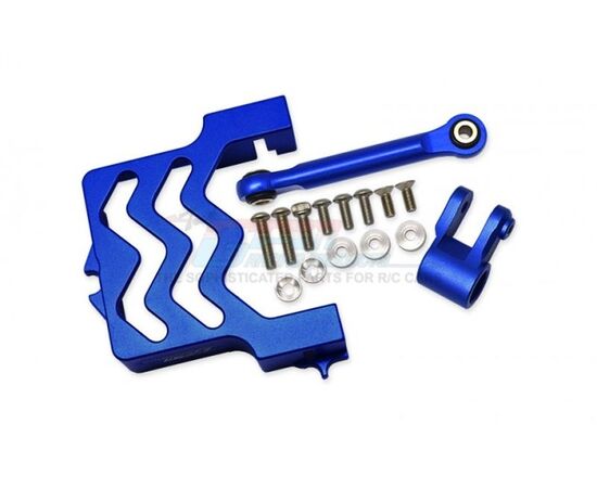Alu Servobefestigung mit Servohorn und Lenkstange blau