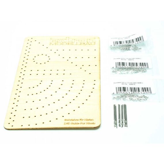 Kleine Nieten aus Aluminium zur Verzierung von Oberflächen wie z.B. bei Flugmodellen. Idealerweise werden mit einem 1mm Bohrer die Löcher vorgebohrt und die Nieten eingesteckt.