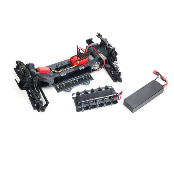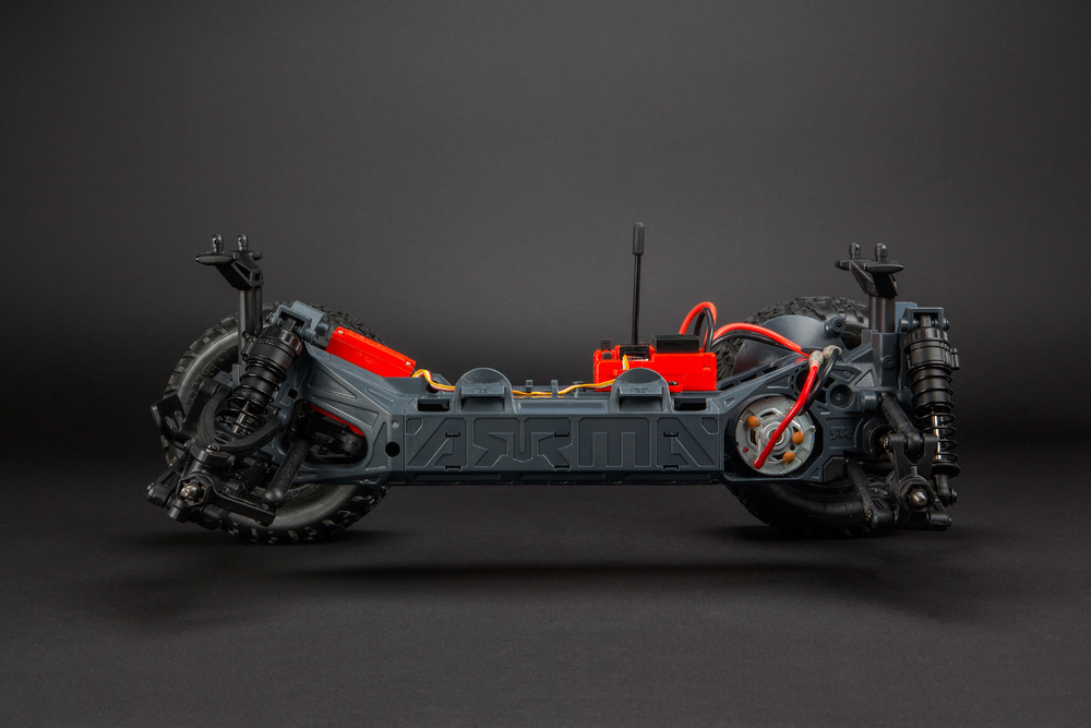 Mittelmotor-Chassisdesign. Der ARRMA 20T Bürstenmotor der 540er Baugrösse sitzt zentral im Chassis und ist dort vor Schmutz, Wasser und Unfällen geschützt.