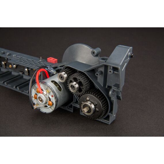 Das neuentwickelte Getriebe verfügt über breite Verbundkunststoffzahnräder, die Stabilität und Haltbarkeit garantieren. Die Kraft wird durch ein Metallkegelraddifferential auf die Antriebswellen übertragen. Kugellager an allen rotierenden Achsen sorgt für eine effiziente Kraftübertragung.