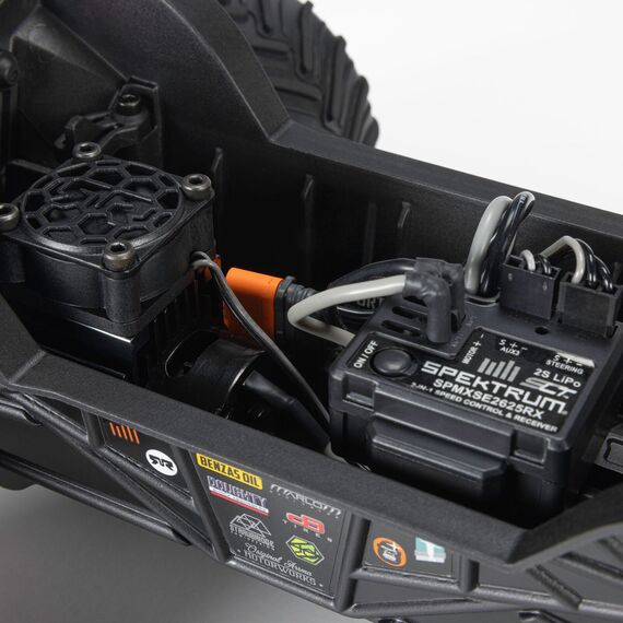 Sobald du den Truck startest, ist die Gasannahme direkt und präzise. Der typische ARRMA-Spirit, der für Action steht, ist hier in Mini-Format verpackt. Das Chassis steckt harte Stöße locker weg. Das bedeutet, der QUAKE GROM macht alles mit, was du ihm abverlangst: Bordsteine hochspringen, Rampen nehmen oder durch lockere Erde pflügen. Wartung und Akkuwechsel sind kinderleicht – der Spaß steht immer im Vordergrund.