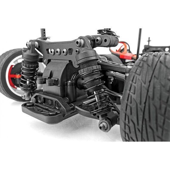 Das Apex2-Chassis wurde gegenüber seinem Vorgänger überarbeitet und verfügt über einige der neuesten Features aus dem On-Road-Racing-Bereich. Dank Einzelradaufhängung mit ölgefüllten Gewindestoßdämpfern vorn und hinten und aktiver Sturzänderung an der Hinterachse bietet das Apex2 ein ultimatives Fahrverhalten auf unebenem Asphalt. Dadurch ist es die perfekte Plattform für den Hoonitruck und reifenzerfetzende Action!