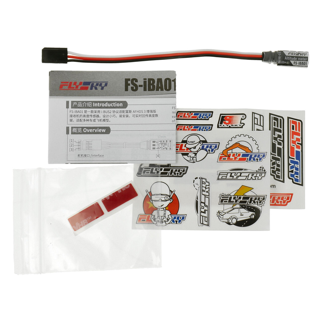 Der kompakte Höhensensor FS-iBA01 ergänzt Flysky Fernsteuerung mit dem AFHDS3-Frequenzprotokoll um nützliche Funktionen. So kann nach der einfachen Installation die Höhenlage in Echtzeit mitverfolgt werden, während die Genauigkeit dabei auf den Meter angezeigt werden kann.