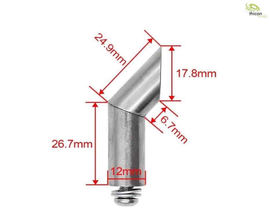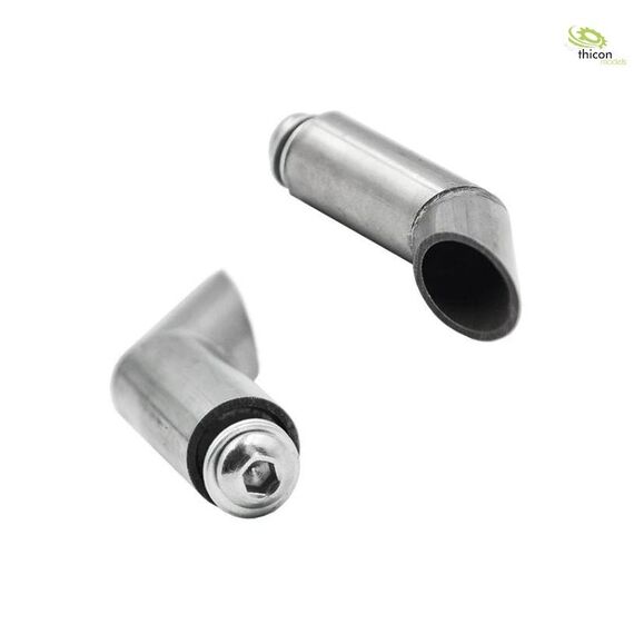 Auspuffrohr aus Edelstahl. Ideal für Baumaschinen oder LKW-Modelle. Das Endrohr hat M4-Gewinde mit einer Schraube zur festen Montage am Modell.