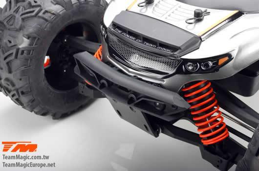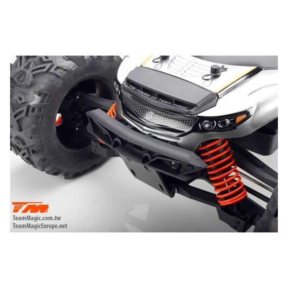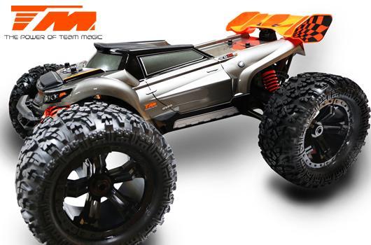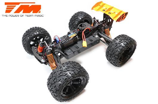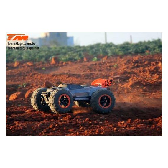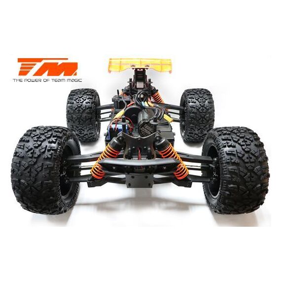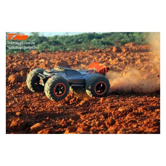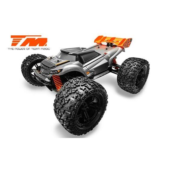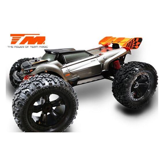 Der Team Magic E6III HX ist der ultimative Monstertruck aus dem Hause Team Magic. Schneller grösser, agressiver. Mit Backflips auf Kommando und Geschwindigkeiten von bis zu 100km/h können Sie sich sehen lassen. Geschlossenes Getriebe, ganzteilige Tuning CVD Stahl-Antriebswellen und symetrische Schwingen auf allen 4 Achsen sowie Hobbywing Elektronik im Herzen machen diesen Truck zu einer beeindruckenden Kampfmaschine.