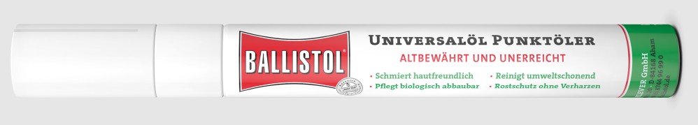 Ob für Handwerk, Haus oder Hobby, ob zum Pflegen, Schützen, Reinigen oder Schmieren, ob daheim, am Arbeitsplatz oder unterwegs Ballistol Universalöl ist das richtige Öl für 1.000 Fälle und mehr. Es wird als Rostschutz, Schmieröl, Pflege- und Reinigungsmittel eingesetzt und glänzt dabei seit als 115 Jahren mit vielen hervorragenden Eigenschaften.