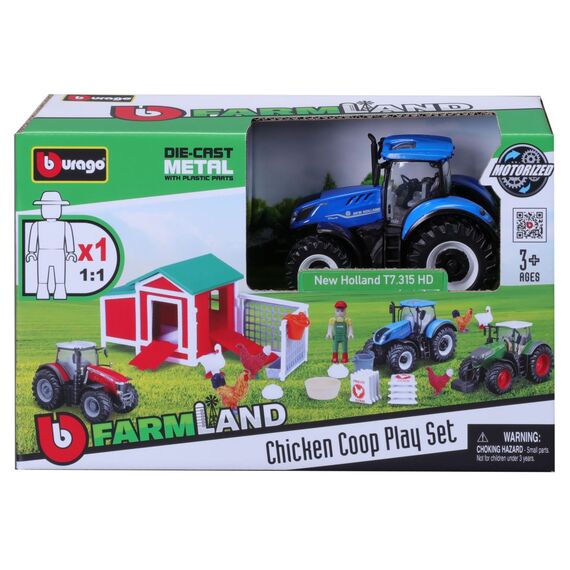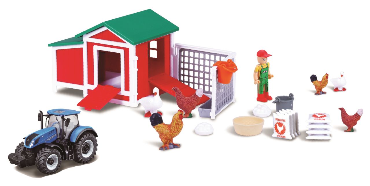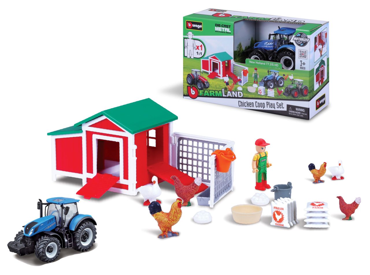 Cooler Hühnerstall von Bburago mit hochwertigem Traktor aus Zinkguss und vielen Figuren und Zubehör.