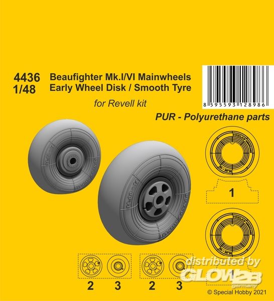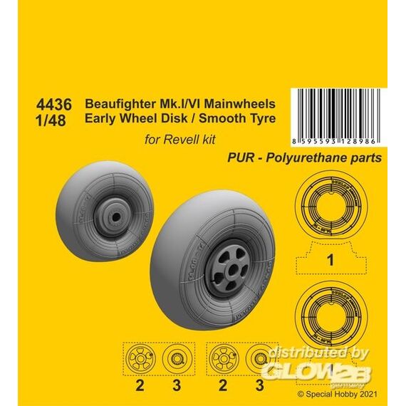 Beufighter Mk.I/VI Mainwheels - Early Wheel Hub / Smooth Tyre