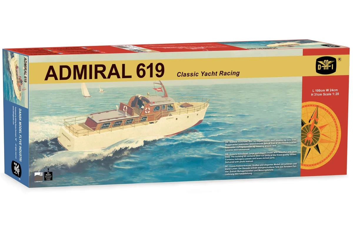 Die Admiral von DMI (Danish Model Aircraft Industry) ist ein echter Klassiker des Modellbaus aus der Mitte des 20. Jahrhunderts und erfreut sich bei Modellbau-Enthusiasten bis heute großer Beliebtheit. Der Bausatz, der ursprünglich 1965 auf den Markt kam, repräsentierte eines der schönsten Holz-Kabinenkreuzer-Modelle des Unternehmens und war den eleganten Motoryachten der Nachkriegszeit nachempfunden.