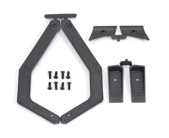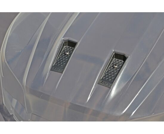 RPM Body Savers for the X-Maxx are a simple, yet clever solution to solve that problem. Out front, they look like molded hood vents (2) and A/C vents (2) while in the rear, they look like exposed sections of riveted metal (2). It's a perfect way to camouflage their intended purpose and yet still keep the body firmly attached.
