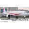 Plastikmodellbausatz eines US-amerikanischen Passagier-Jets mit 63 Teilen. Hier mit den Markierungen der japanese Government Air Transport 2019. Länge gebaut 370 mm / Breite 324 mm.