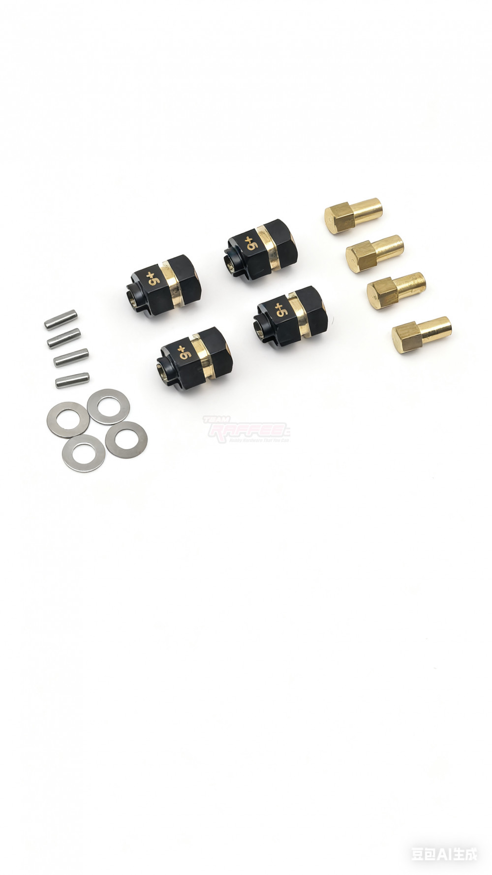 This is a Team Raffee Co. brass wheel weight +5mm hubs (4) for Axial SCX24