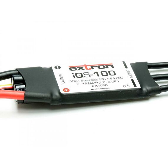 Extron iQS Brushless Regler überzeugen durch hohe Qualität, Leistung und Zuverlässigkeit. Sie passen perfekt zu allen handelsüblichen Brushless Motoren (Außenläufer oder Innenläufer) und sind natürlich auch die erste Wahl für Extron Brushless Motoren. Als Akkus können entweder LiPo, NiMH oder NiCD Akkus eingesetzt werden. Die Zellenzahl wird automatisch vom Regler erkannt. Dank Einsatz moderner, hochwertiger SMD Bauteile ist der Innenwiderstand der Regler besonders niedrig. Die hohe Taktfrequenz ermöglicht ein hochauflösendes und feinfühliges Regelverhalten.