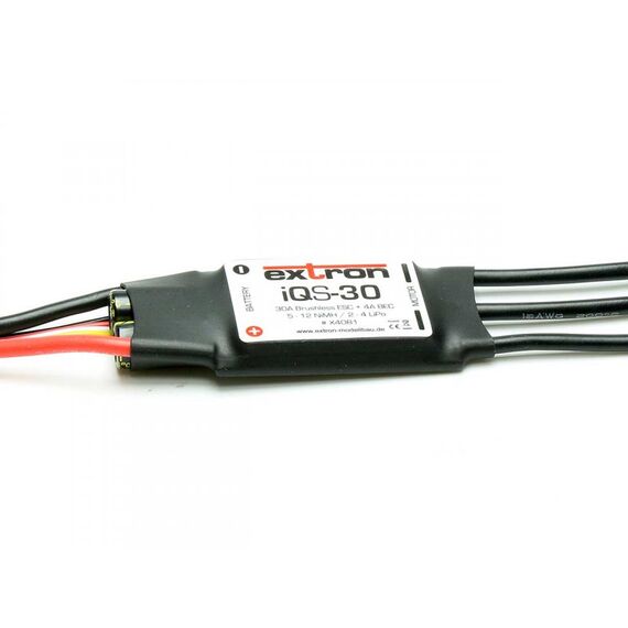 Extron iQS Brushless Regler überzeugen durch hohe Qualität, Leistung und Zuverlässigkeit. Sie passen perfekt zu allen handelsüblichen Brushless Motoren (Außenläufer oder Innenläufer) und sind natürlich auch die erste Wahl für Extron Brushless Motoren. Als Akkus können entweder LiPo, NiMH oder NiCD Akkus eingesetzt werden. Die Zellenzahl wird automatisch vom Regler erkannt. Dank Einsatz moderner, hochwertiger SMD Bauteile ist der Innenwiderstand der Regler besonders niedrig. Die hohe Taktfrequenz ermöglicht ein hochauflösendes und feinfühliges Regelverhalten.