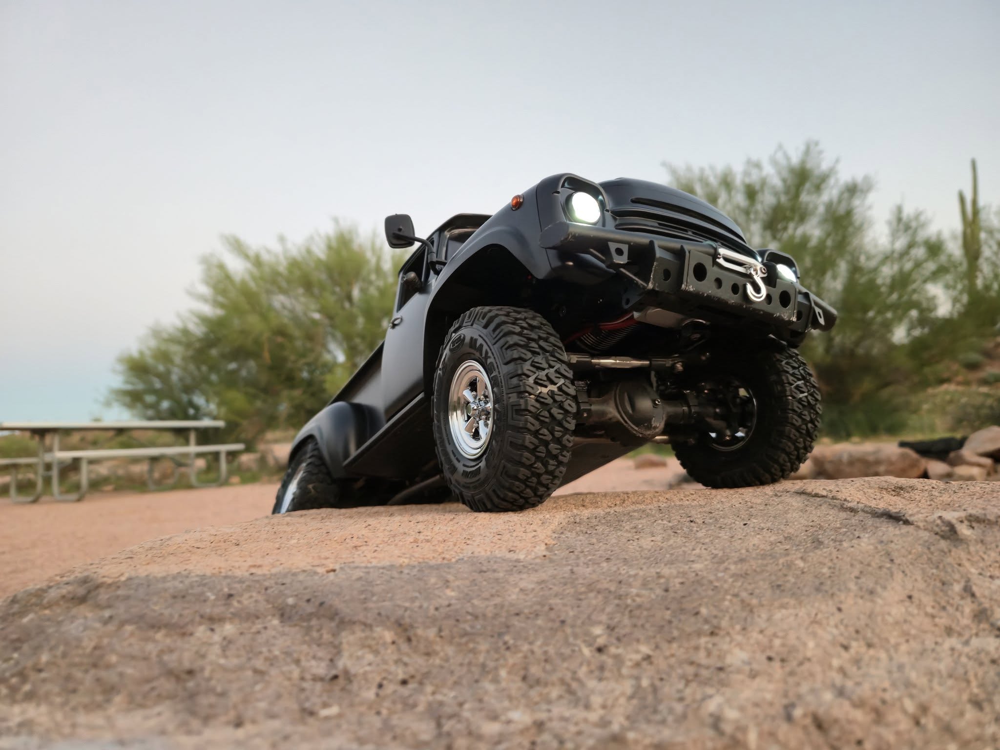 besteht aus starren BRX80 PHAT™-Achsen vorne und hinten sowie leistungsstarken KUDU™-Öldruckstoßdämpfern mit Gewindefahrwerk (70 mm vorne, 80 mm hinten).