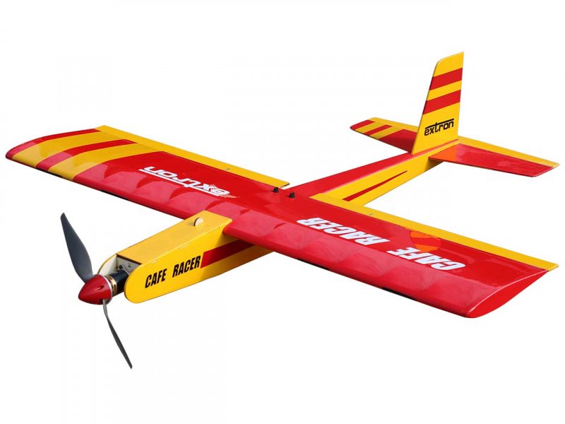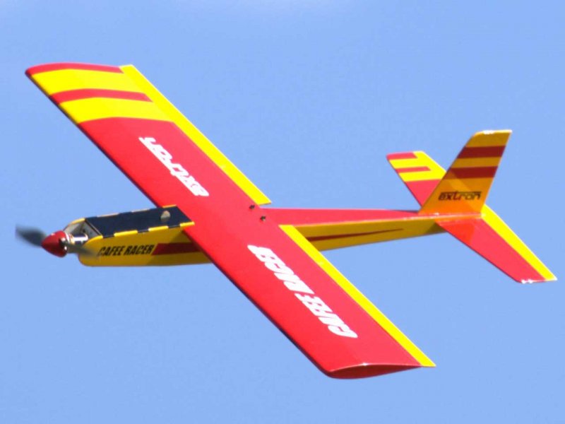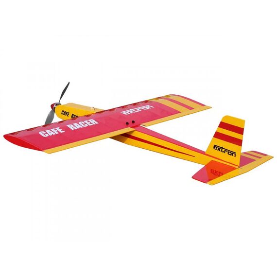 Der Cafe Racer ist ein flottes Speedmodell und verspricht Flugspaß pur. Das Modell kann problemlos an zwei Abenden gebaut werden. Aufgrund seiner ausgefeilten, geometrischen Formgebung ist er auch einfach zu fliegen. Obwohl sehr leicht, ist der Cafe Racer sehr stabil konstruiert so daß man ihn auch ruhig mal etwas härter rannehmen kann.