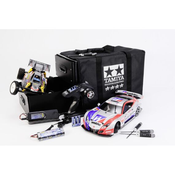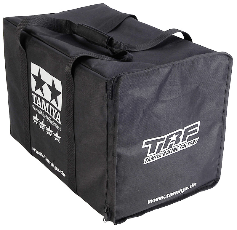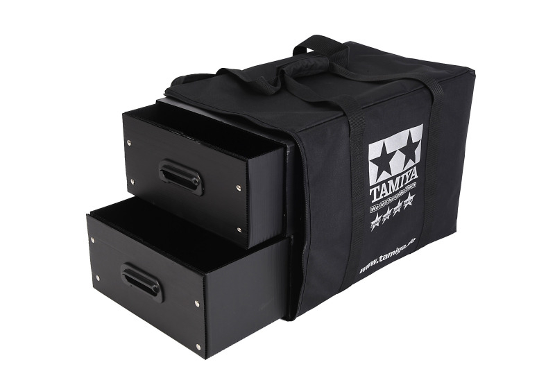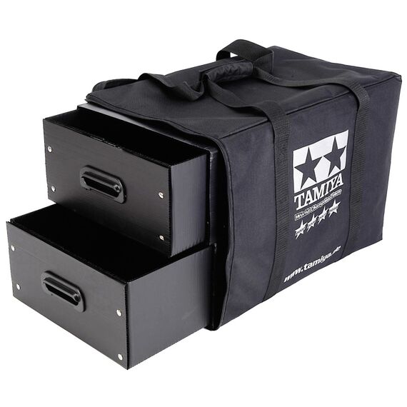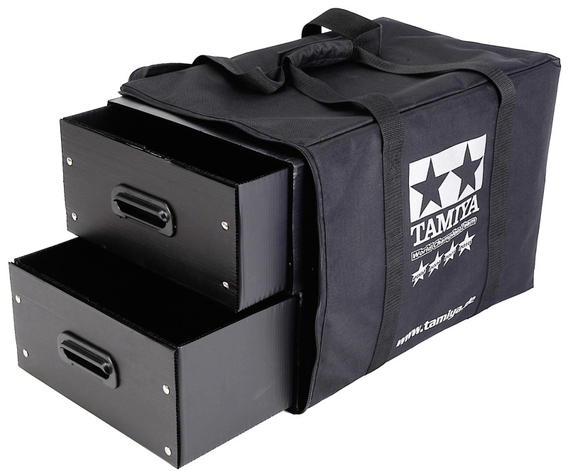 Die stylische RC-Car Transporttasche im TAMIYA-Design schluckt alles, was Racer unterwegs benötigen und eignet sich für alle Zwecke im Modellbau. Die große Tasche ist perfekt für den Transport von RC-Cars im Maßstab 1:10 ausgelegt. Zwei stabile Kunststoff-Schubladen sorgen für die Sicherheit von Modellen und Equipment. Das Innenleben lässt sich bequem durch die riesige Frontklappe mit umlaufendem Reisverschluss komplett entfernen, dann finden auch größere Modelle in der TAMIYA RC-Car Transporttasche Platz.