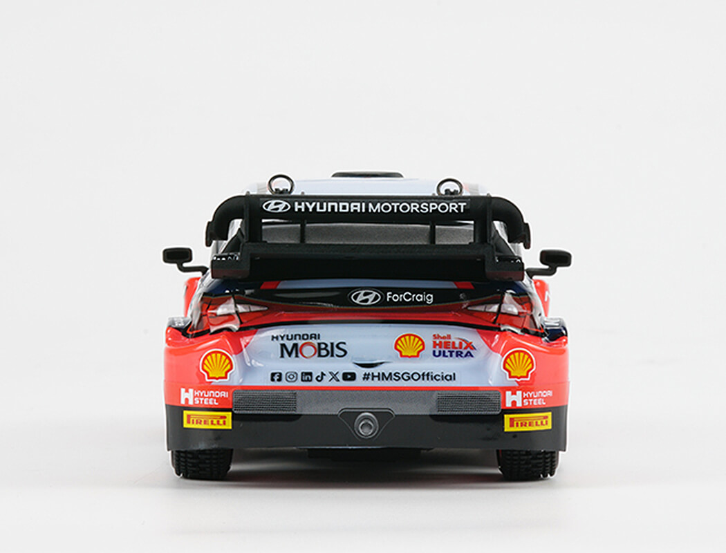 Zusätzlich zum Modell legt Carisma dem Hyundai Drivers 2025 einen weiteren Namensaufkleber-Satz bei, auf dem Ott Tänak abgebildet ist, der sich 2025 einen erbitterten Kampf um die Fahrermeisterschaft liefert.