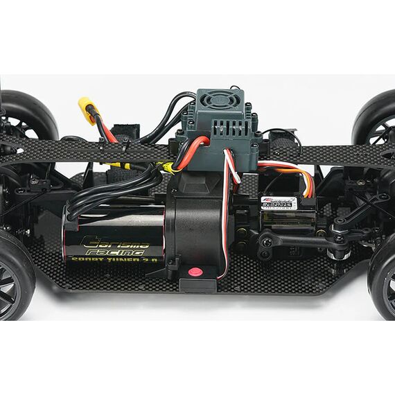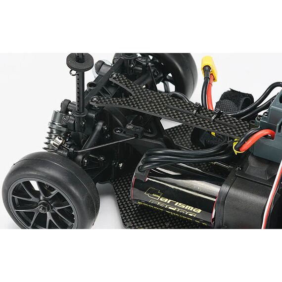 Ein leistungsstarkes bürstenloses Antriebssystem, bestehend aus einem bürstenlosen Carisma-Motor und einem bürstenlosen Regler, sorgt für starke Beschleunigung und beeindruckende Höchstleistung, die perfekt auf das ausgewogene Layout des Chassis abgestimmt sind.