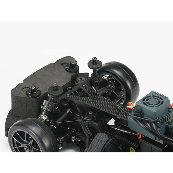 Das leichte Chassis aus Kohlefaserverbundwerkstoff (Unter- und Oberdeck) sorgt für außergewöhnliche Steifigkeit und verbessert so das Lenkverhalten und die Stabilität bei hohen Geschwindigkeiten. Serienmäßig verbaute, ölgefüllte Stoßdämpfer aus eloxiertem Aluminium absorbieren Stöße und gewährleisten optimale Traktion. Stabilisatoren an Vorder- und Hinterachse verbessern die Kurvenkontrolle zusätzlich und reduzieren die Karosserieneigung bei sportlicher Fahrweise.