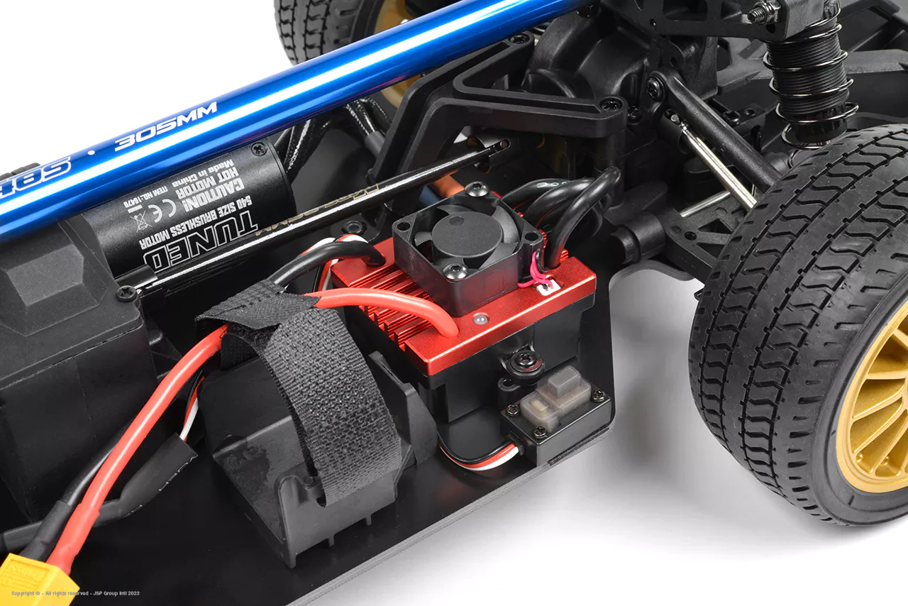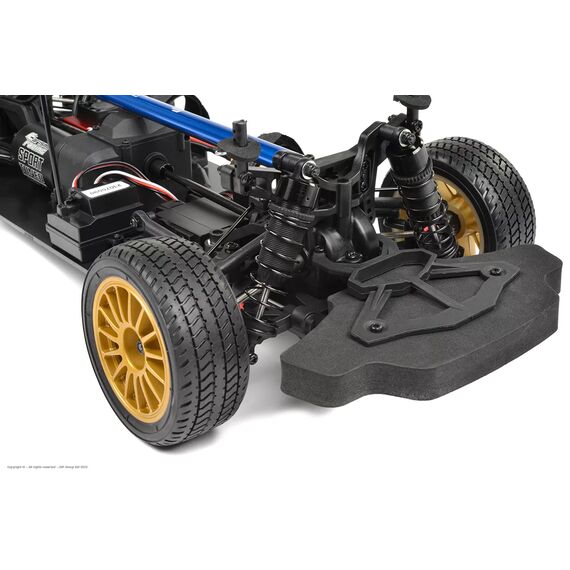M48S Merkmale: • Maßstab: 1:8 • Radstand: 319mm • Breite: 231mm • Fahrwerk: LWB mit Lightweight G10 Chassisplatten • Serienmäßige Verzahnung: Hauptzahnrad 44T M1, Motorritzel 12T M1, Innenübersetzung: 15/39 • Antriebsstrang: Voll kugelgelagert, Dedicated 4WD, Metalldifferentiale vorne und hinten, zentrales Zahnraddifferential zur Maximierung von Grip und Leistung • Antriebsleistung: 540 Can Brushless Power mit einem effizienten XT60 Anschluss, Brushless ESC ist 2S (7.4v) kompatibel • Aufhängung & Handhabung: Ölgefüllte Coil-Over Stoßdämpfer und Anti-Roll Bar vorne und hinten • Räder: Iconic Multispeichen-Rallye-Räder in Goldfarbe • Reifen: Tarmac Spec Racing-Reifen • Karosserie/Lackierung: Subaru's ikonisches 1999 WRC Monte-Carlo Trim (wie von der Rallye-Legende Colin McRae gefahren) • Radio: Vollformatiges, voll funktionsfähiges 2,4 GHz F.H.S.S CTX-8000-Lenkradradiosystem
