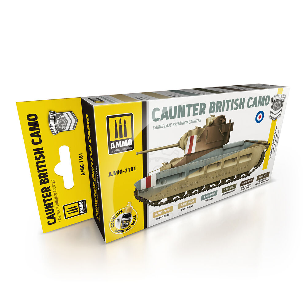 1 x ACRYLIC COLOR Desert Sand (A.MIG-0029)1 x ACRYLIC COLOR Sand Yellow (A.MIG-0030)1 x ACRYLIC COLOR Pale Grey (A.MIG-0063)1 x ACRYLIC COLOR RAL 6014 Gelboliv (A.MIG-0087)1 x ACRYLIC COLOR SCC 1A (British Brown 1941-42) (A.MIG-0110)1 x ACRYLIC COLOR SCC 2 (British 1941-42 Service Drab) (A.MIG-0111)
