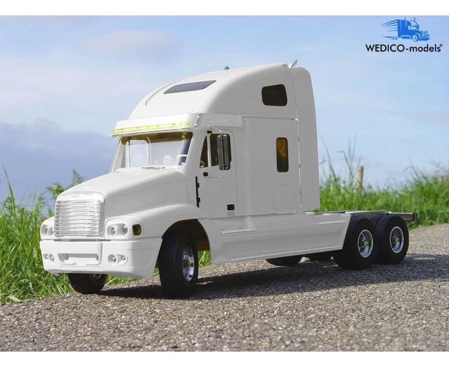 Das Freightliner Century Class S/T Fahrerhaus und die Schlafkabine mit erhöhtem Dach sind aus Aluminiumdruckguss, Aluminiumblechen und hoch-wertigsten Kunststoffen hergestellt. Das Fahrerhaus ist ausgestattet mit Armaturenbrett, Lenkrad, verchromter Sonnenblende, Rückspiegeln, Scheibenwischern, verchromtem Kühlergrill, Doppel- und Nebelscheinwerfern, Blinkergläsern, Seitenverkleidung, Windleitblechen, verchromten Trittbrettern und Plattform, Auspuffanlage und in Fahrerhausfarbe lackierter Stoßstange Alle Türen sind zu öffnen und die Motorhaube ist zu ca. 60° kippbar. Das Dach kann zusammen mit der Rückwand abgenommen werden und ermöglicht dadurch einen schnellen Batteriewechsel.