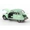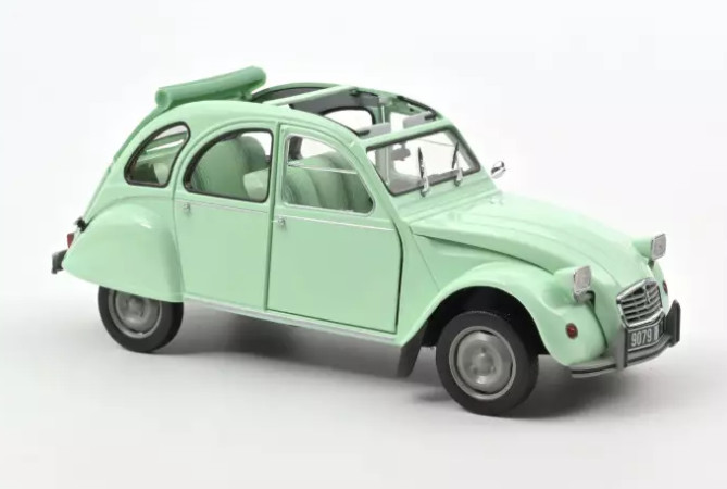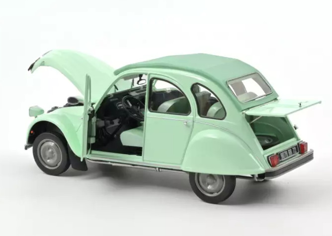 Mit seiner Pastellfarbe ist dieser 2CV 6 Club aus dem Jahr 1982 eine subtile Nachbildung, insbesondere dank seines wassergrünen Verdecks und seiner gestreiften Polsterung mit drei Grüntönen.