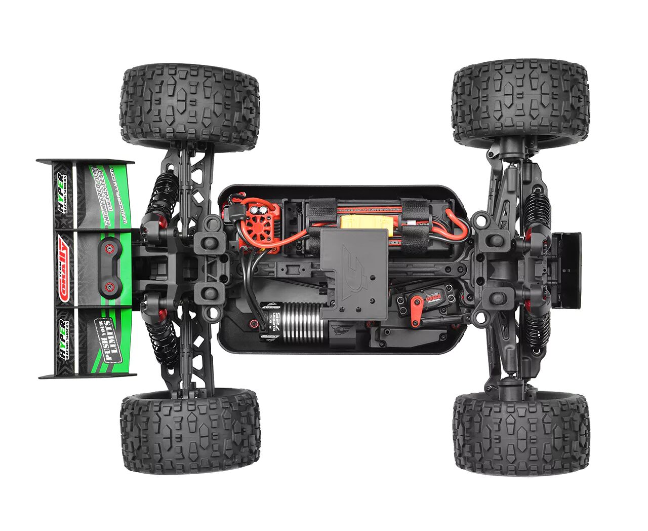 Das Herzstück des Punisher4 ist der leistungsstarke Kuron 725 4-polige, 2150kv sensorlose bürstenlose Motor, gepaart mit der Torox 135 Electronic Speed Control. Diese Kombination liefert aufregende Leistung und erreicht mit 4S LiPo-Akkus Geschwindigkeiten von über 80 km/h. Das digitale High-Speed-Servo HV7225 mit robustem Metallgetriebe und 25 kg Drehmoment sorgt für eine präzise Lenkung.