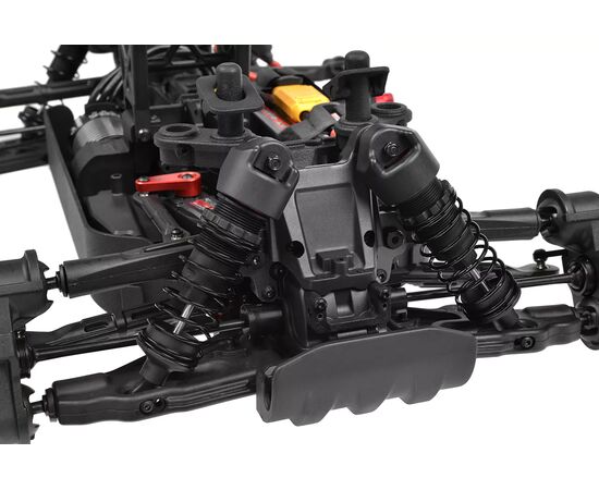 Der Aluminium-Motorhalter bietet drei Motorpositionen für eine präzise Ritzelausrichtung. Der verstärkte Antriebsstrang mit Stahl-Abtriebsschalen und einem robusten 52-Zoll-Stirnradgetriebe sorgt für lange Haltbarkeit. Die breiten Naben der Kagama- und Sketer-Räder sorgen für Stabilität und Geländetauglichkeit, während eine neue Wheelie-Bar hilft, die immense Kraft zu kontrollieren. Vom bürstenlosen Kuron 725-Motor bis zum Torox 135 ESC trägt jede Komponente zu einer berauschenden Höchstgeschwindigkeit von über 80 km/h bei. Der CT2S 2.4GHz Sender, das Chassis-Verstärkungssystem und der High-Downforce-Flügel vervollständigen das Paket und machen den Punisher4 zu einem echten Beweis für das Erbe des Team Corallys an Innovation und Leistung.